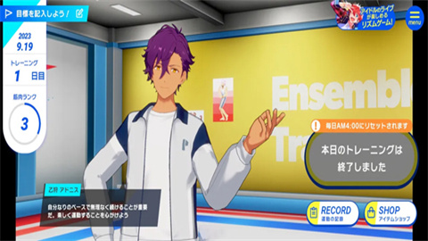 由Hy Element打造的《偶像梦幻祭Training》是一款音乐养成题材游戏,作为系列衍生新作,玩家能从偶像、学长、老师等不同身份的五十余位角色中,挑选心仪对象作为健身教练,共同进行舞蹈与锻炼活动。