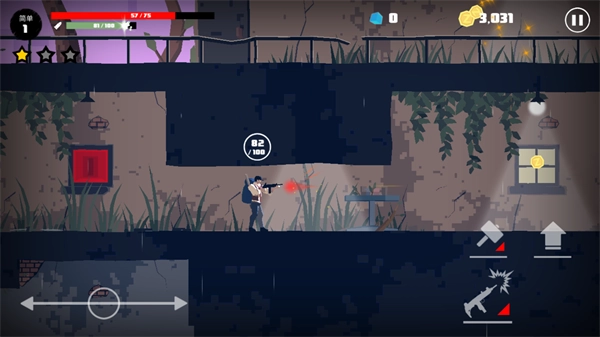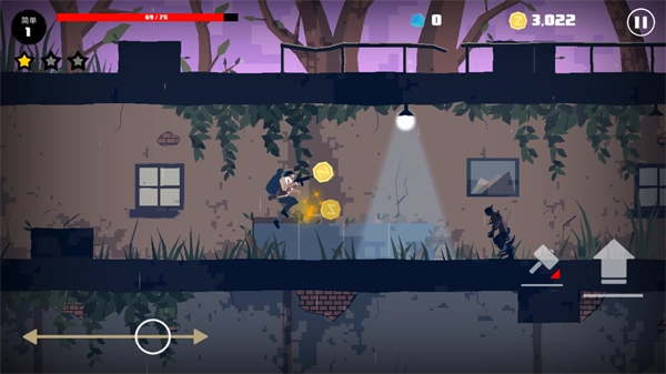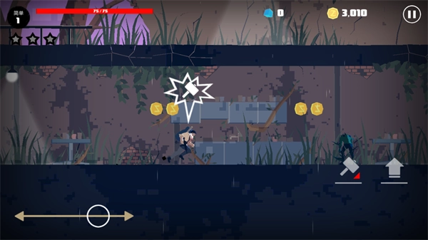 2、角色的左右移动可通过左侧进行控制,右侧则设有攻击与跳跃按钮。