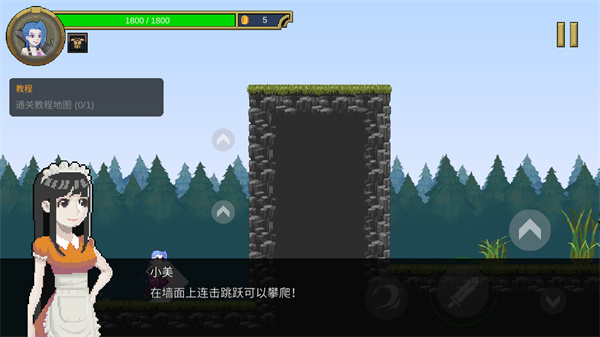 2进入游戏界面后,左侧的操作区域负责角色的前后移动,右侧的操作区域则用于执行跳跃和攻击动作。