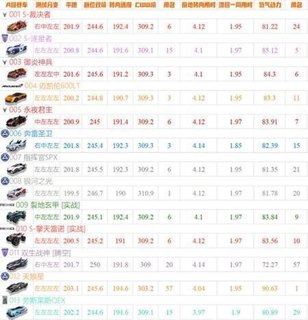 T0级别赛车:指挥官、擎天雷诺、神风玉堂、双生战神、劲霸、苍穹绝影 指挥官作为最新推出的特性钻石A车,其强度表现自然没什么可争议的——在计时赛领域,它的整体性能已经全面超越了雷诺,毕竟“不卡气”这一特性带来的优势确实相当显著。