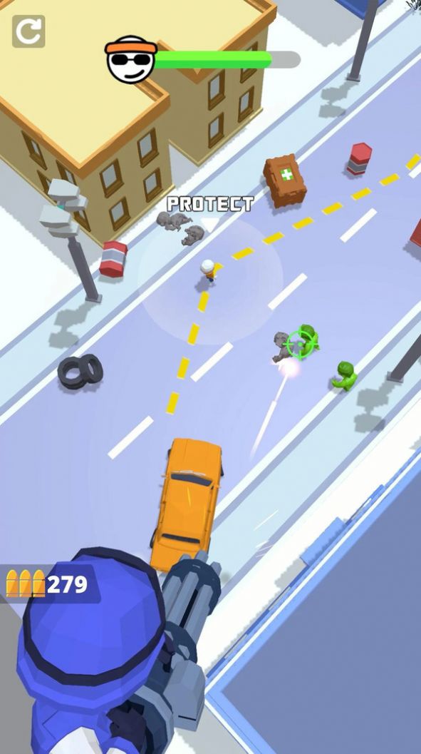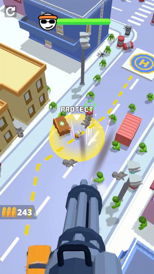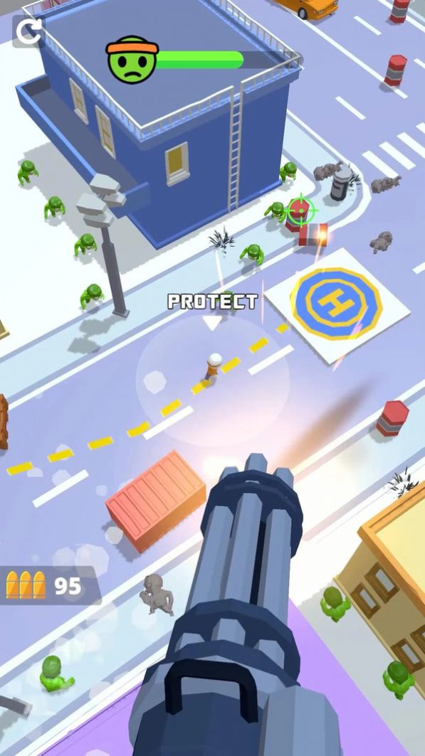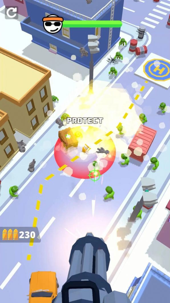 1、在僵尸屠戮官的侵袭下,玩家所在的城市即将沦陷,你得全力解救城中的居民。
