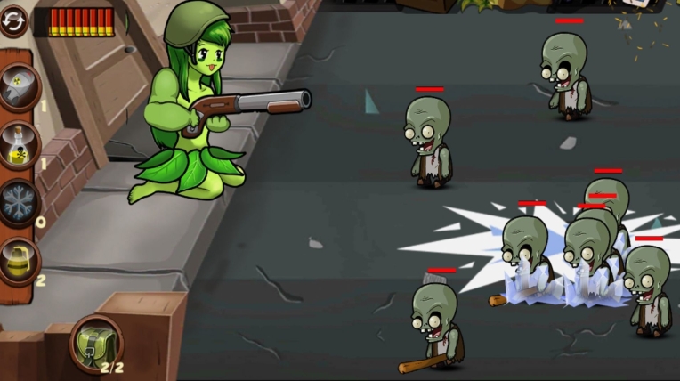 1每个关卡都有大批僵尸袭来,玩家得动动脑筋编排打法,才能顺利闯过这一关。