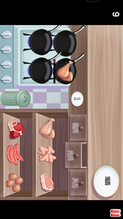 3、通过点击拖动的方式来处理食材,煎炒煮炸等烹饪方式可以自由发挥,甚至能将彩虹糖和番茄熬制成岩浆般的酱料淋在鸡腿上,摆盘也能随心搭配。