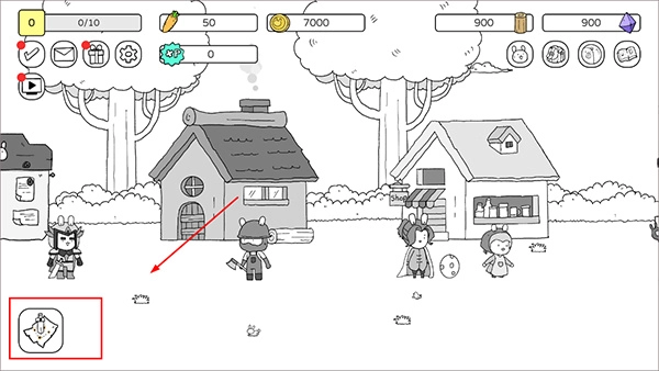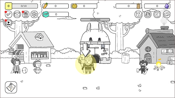 2、当教程结束后,我们回到最初的兔子角色,点击左侧的小兔子,准备好战斗,升级基地,并招募新的兔子伙伴。