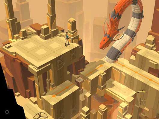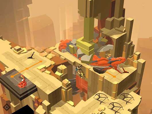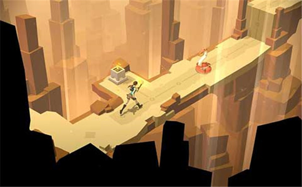 场景三的挑战还在前方等着我们。当劳拉踏上第一个小平台时,巨蟒就会发起攻击,这时我们得向下躲避,然后登上最上方的高台。刚爬上高台的那一刻会引来蜥蜴的注意,我们带着它绕个小圈,再把立柱往外拖一格。由于立柱的阻挡,蜥蜴会跟丢目标,我们就能趁机解决掉它。之后把立柱推到下方空着的路口,搭成一个临时的通行平台。跳下高台后再躲开巨蟒的一次攻击,就能顺利到达画面右侧了。