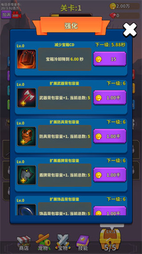 6、试着持续提升角色等级来获取更强大的能力,在轻松的放置挂机过程中战胜强大敌人,完成冒险之旅。