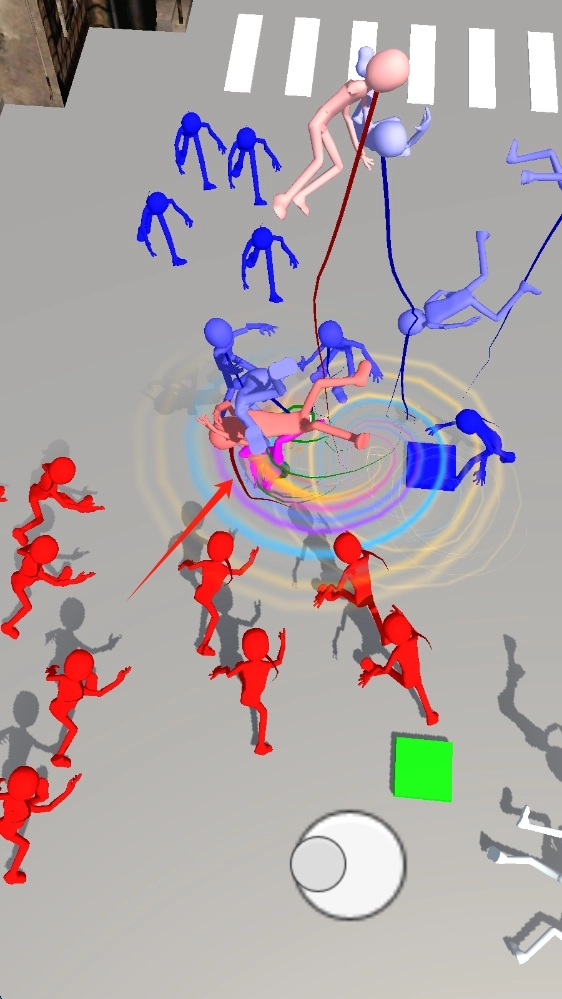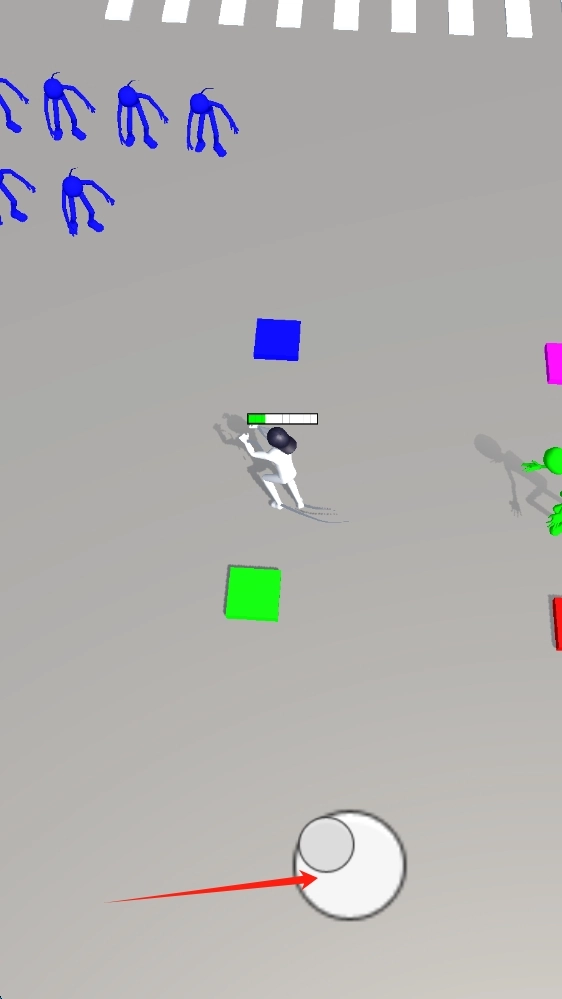 1. 在游戏的操作界面,熟练且灵活地运用虚拟摇杆,以此来操控角色于场景之中自如移动,同时收集各类颜色的方块,为接下来的战斗预先做好准备。