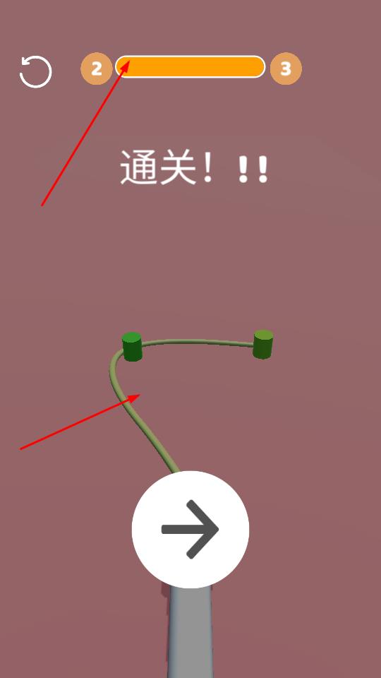 2在关卡进程里,通过操作让管道产生形变并延长,引导顶部的物体向目标方向移动,同时要关注通关进度条的动态变化,就像示例中的初始关卡那样顺利完成挑战。