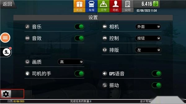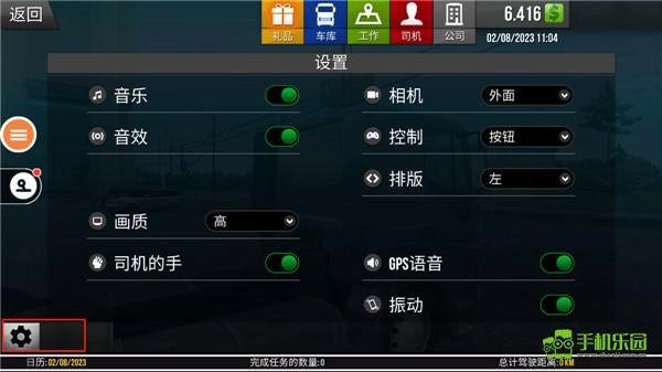 4、左侧依次是车灯、雨刷、喇叭和帮助功能;右侧依次为刹车、油门,以及拉货和卸货功能。点击题图还能开关小地图。
