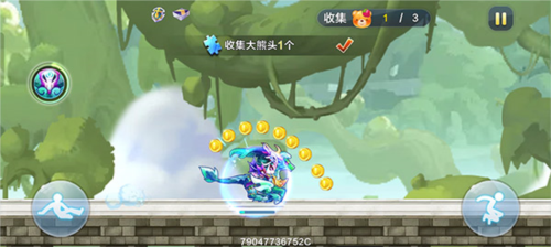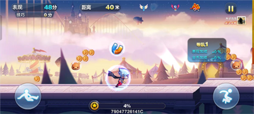 3、进入到天天酷跑游戏之后,有两个按键,分别是滑铲和跳跃的按键,他们都是都是用来躲避游戏中的障碍和拾取金币使用,我们需要尽量跑的更远,获得更高的分数;