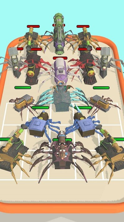 这款以诡异列车为背景的策略游戏,既有令人心跳加速的惊悚感,又让人忍不住沉浸其中。核心玩法是通过组合不同类型的怪异生物,打造出更具威力的战斗单位。昏暗的棋盘场景中,合理布置蜘蛛类怪物的阵型至关重要。操作逻辑看似直观,实则需要缜密思考——两只低阶怪物可融合成高阶形态,融合次数越多,战力提升越显著。对战过程节奏紧凑,稍有疏忽便可能陷入败局。尽管整体画风偏向黑暗诡谲,却丝毫不减游玩时的畅快体验,每当成功合成全新怪物时,那种满足感更是难以言喻。