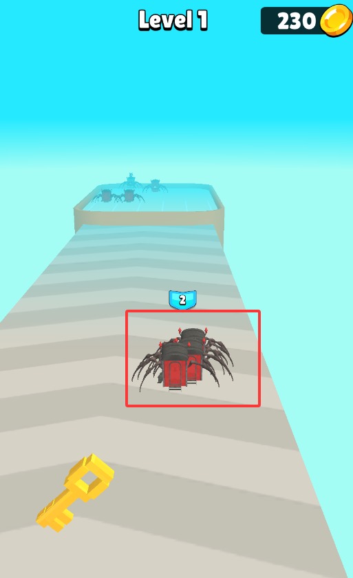 1游戏开始时,通过手指在屏幕上左右滑动来操控巨型蜘蛛移动,当它遇到小型蜘蛛时就可以将其纳入队伍,队伍规模越大越有利。