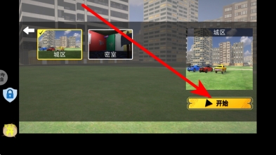 2、在场景选择界面,你可以看到城区、密室等多种不同的场景选项,当你选定了想要探索的场景后,点击开始按钮,就能进入该场景开启冒险之旅。