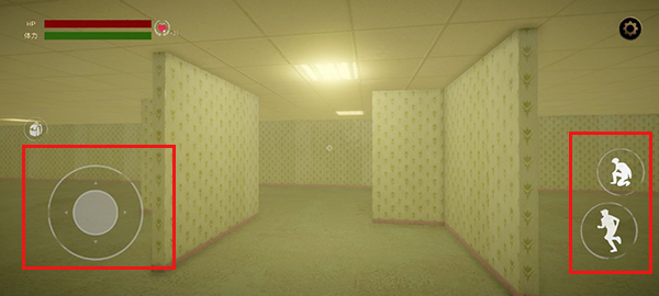 4、接下来能看到左侧轮盘用于控制角色移动,右侧轮盘可实现跳跃与蹲下操作;