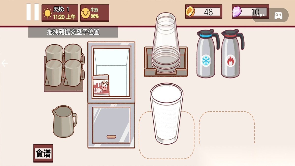 3在厨房调制饮品环节,玩家得依照系统给出的指引来操作,把调配好的饮品拖到指定的提交盘上,这个过程中得把握好操作的节奏。