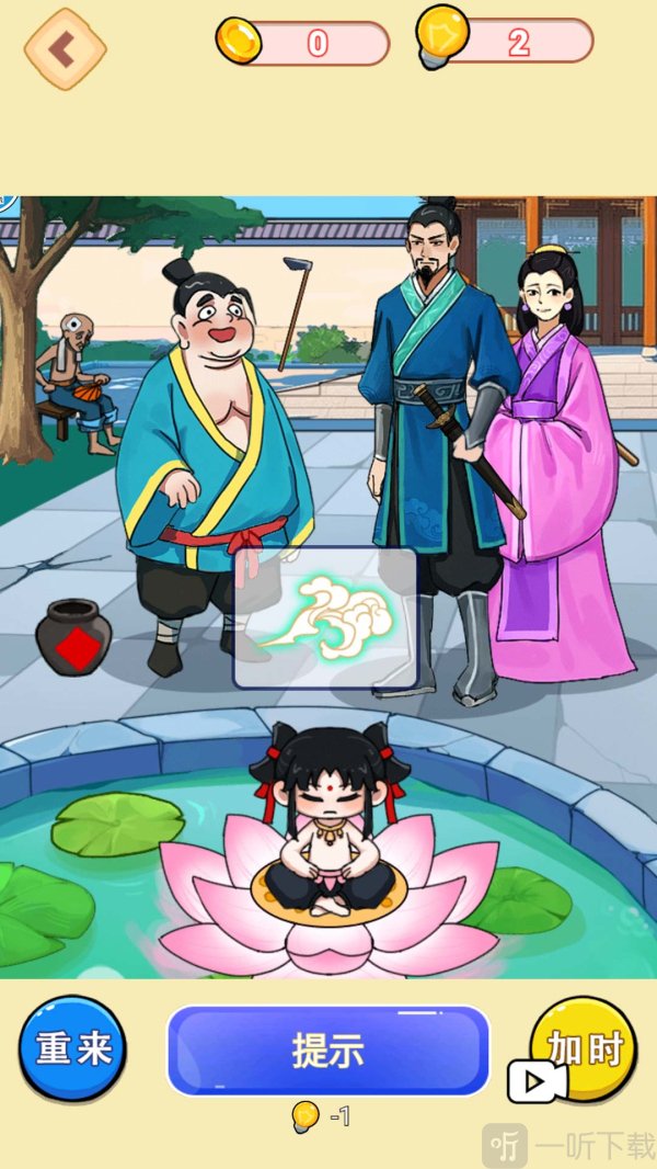《哪吒找奸细》是一款以哪吒故事为背景的休闲益智解谜小游戏。在游戏中,你会遇到各种各样的任务挑战,而核心目标就是跟随剧情的推进,找出隐藏在其中的奸细角色。
