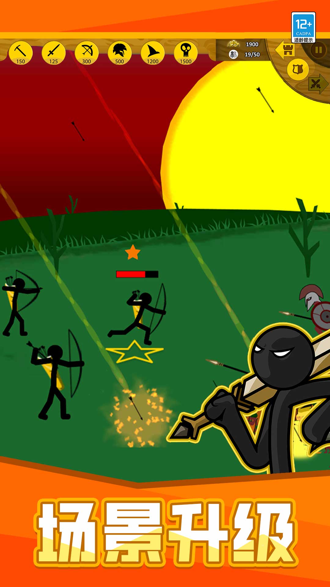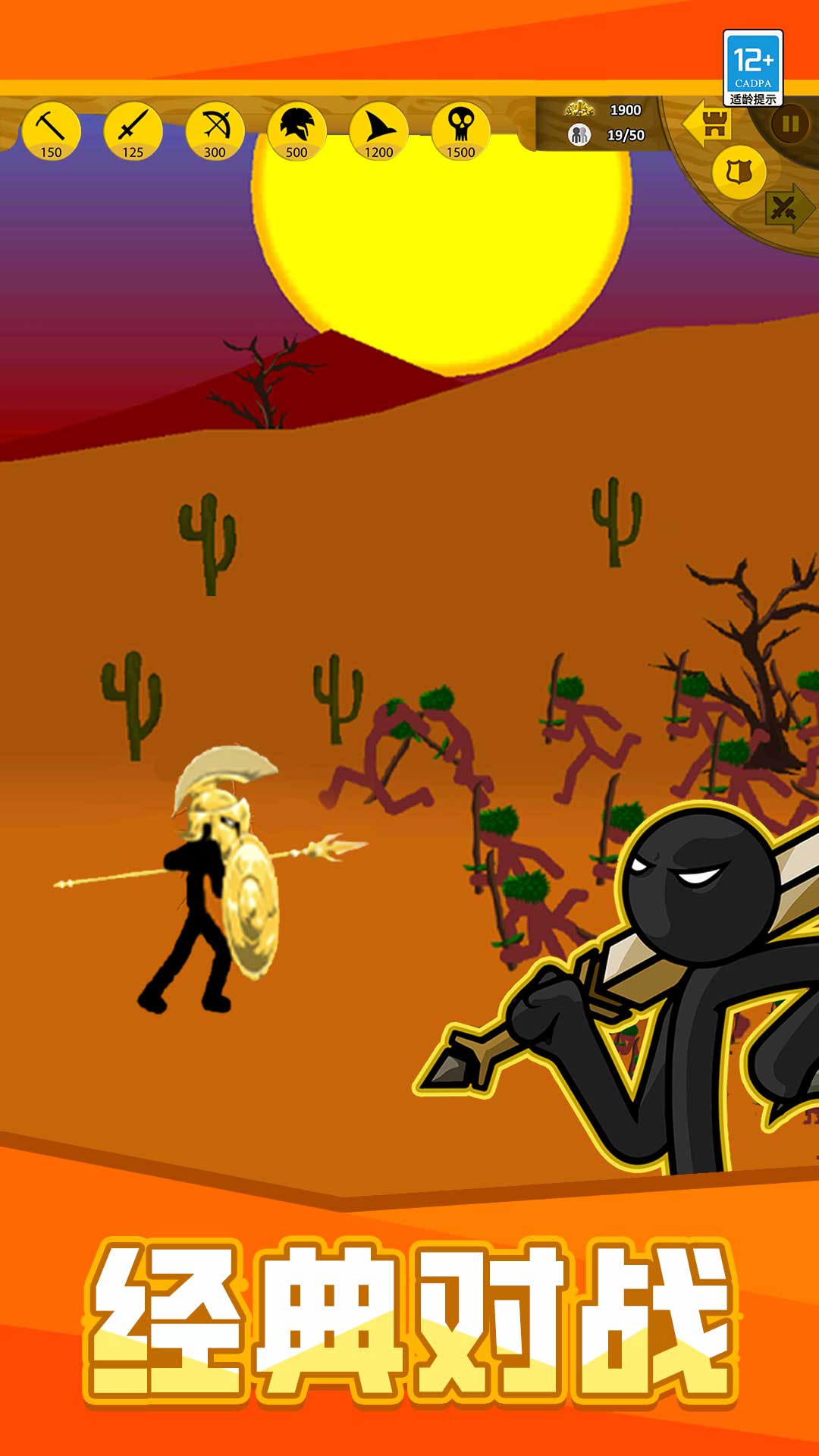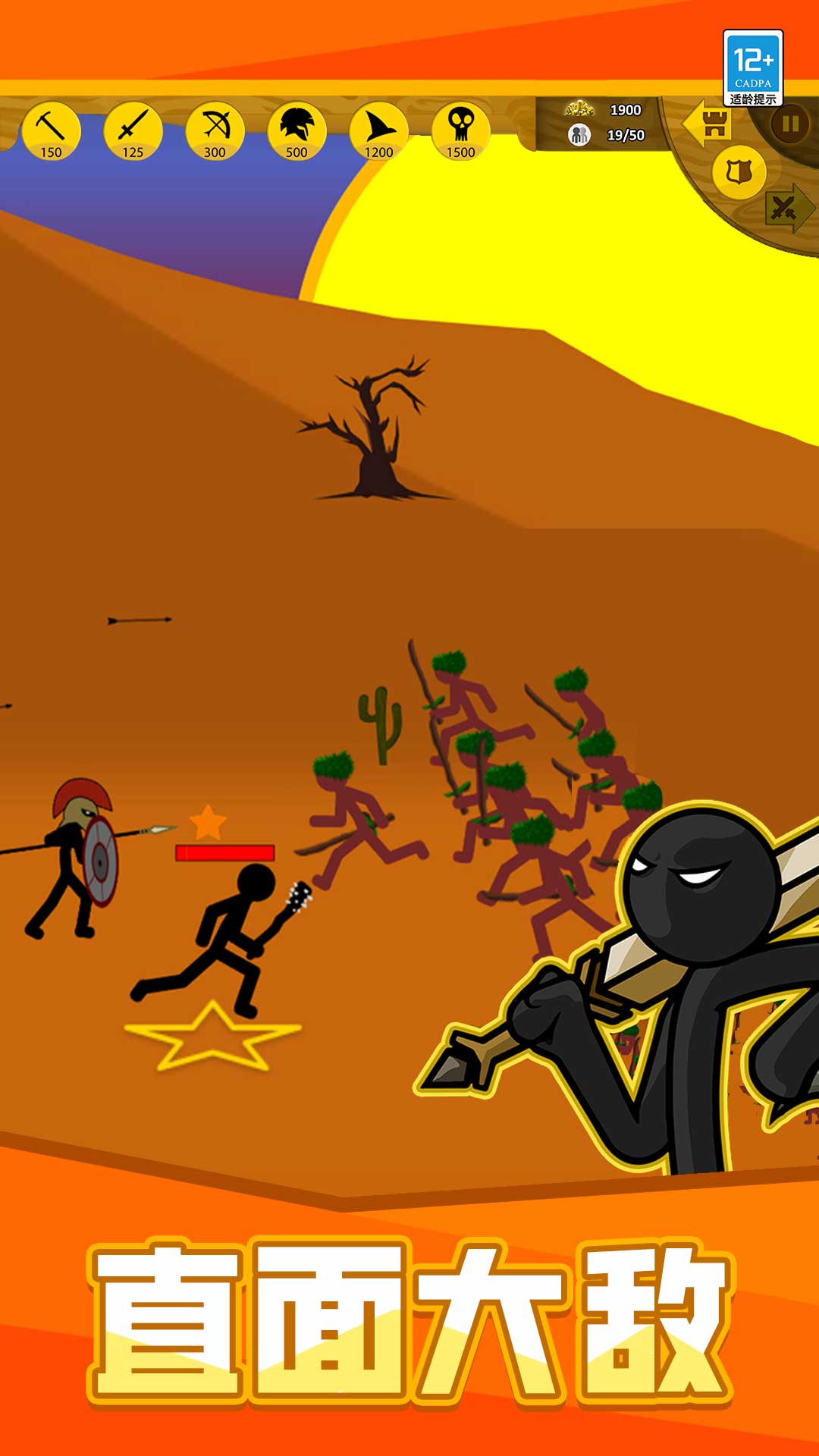 火柴人格斗大战是一款以资源管理为核心的战略战争游戏,玩家将化身为火柴人军团的指挥官,在由简约线条构建的帝国战场上运筹帷幄。你需要统筹指挥矿工采集资源,调度剑士与弓箭手展开攻防作战,通过合理分配各类单位来制定精妙战术,在激烈的夺矿战役与阵地交锋中不断扩张势力范围。同时,还能升级士兵的技能与武器装备,在资源积累与兵力部署之间寻求平衡,尽情感受策略博弈与实时对战带来的紧张刺激乐趣。