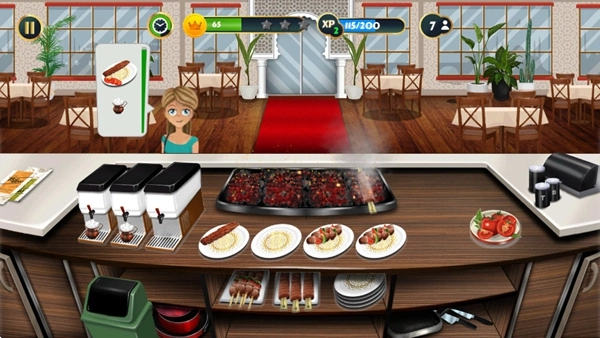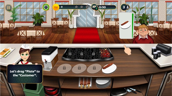 1、每一位顾客的耐心程度是有限的,玩家需要极快的将食物完成给他们一但他们没有了耐心就会直接走掉;
