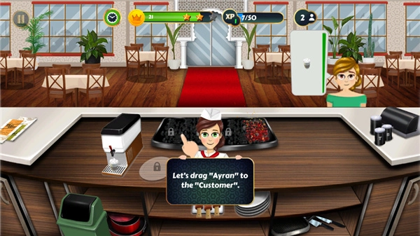 1、赚到的金币可以用来升级我们厨房的设备以及解锁更多设备,这样可以制造更多美味的食材和节省超多的时间;
