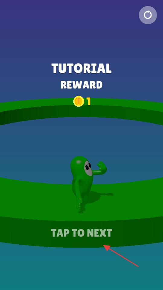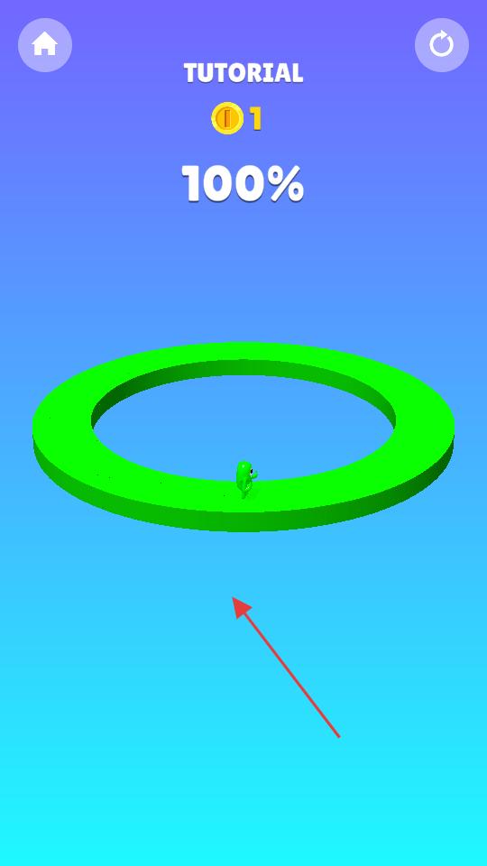 2、操控绿色角色在环形赛道上移动,通过持续点击或长按屏幕让它跳跃,完成赛道的行进。当界面显示百分之百时,教学关卡就完成了,你可以准备领取奖励啦。