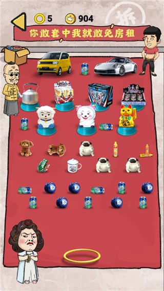 4、这里还有不少特色摊位可供体验,像那个套中珍贵物品就能免房租的房东摊位就很有意思。
