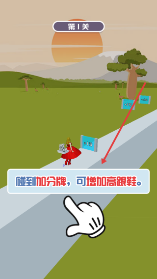 1、在关卡里,你需要操控角色进行移动,一旦角色碰到加分牌,就能增加高跟鞋的数量,而这些高跟鞋在之后的操作过程中会发挥关键作用。