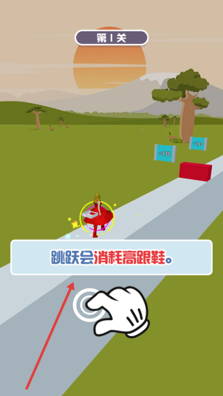 2、点击屏幕能让角色跳跃,要留意跳跃会消耗高跟鞋的数量,得合理安排跳跃的时机与次数,防止高跟鞋用完。