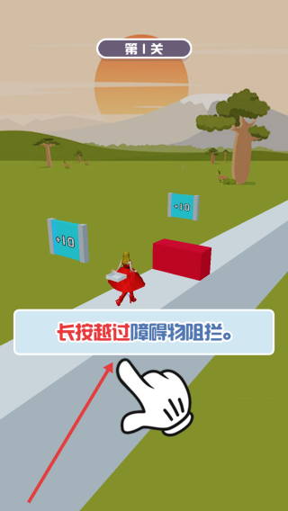 3、当角色遇到障碍物时,长按屏幕就能使其越过障碍,顺利突破阻碍,继续在关卡中推进,完成相应的关卡任务。