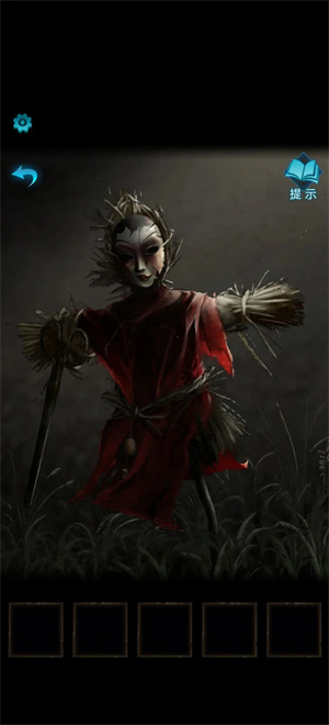 14、查看稻草人时要小心高能,查看后能获取一条长长的红色飘带,这难道就是连接自己和女友的红线吗?感觉有点粗呢~调查草人会发现,完好的一侧有把长剪刀,另一侧的稻草都没了,善良的我们怎么能不(敢)帮它呢?退出查看界面时也会触发高能看到花轿,但它不会靠近,所以不用害怕。拿着飘带来到下方中间的铡刀处,把飘带切成三段,接着点击绳子(此处应为飘带,可能原文笔误)再点击右边的稻草堆,就能跳过小游戏直接获得一捆稻草啦。之后直接回到稻草人那里,把稻草给它装上,就能拿到那把长剪刀了。