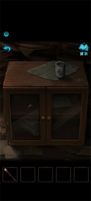 1调查右侧小柜子时,从上方笔筒中取到一支铅笔,发现柜子虽无明锁,但把手处有10个数字,推测密码应是这些数字的某种排列组合。
