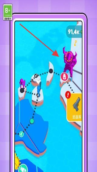 1在地图页面,顺着箭头指示的方向,找到带有紫色标记的怪物所在位置,提前规划好行进路径,做好战斗前的各项准备,以便顺利完成当前关卡的挑战。
