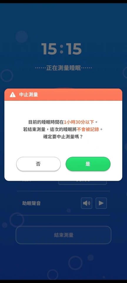 7、若睡眠时间不足一个半小时,此时结束睡眠的话,该次睡眠将不会被记录。