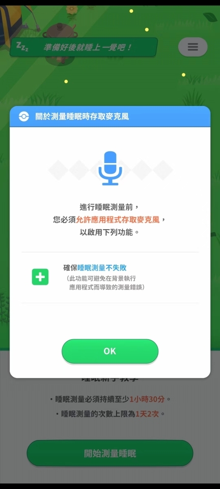 3、在进行睡眠测试之前,必须授权一下麦克风,