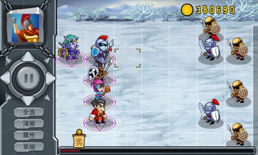 4、游戏里涵盖各式各样的兵种,普通兵种与精英兵种加起来总计20余种。只需双击敌人的单位,就能将其雇佣,使其成为自己的战友。通过左方操作区的箭头可实现移动,中间的圆点则用于跳过回合。