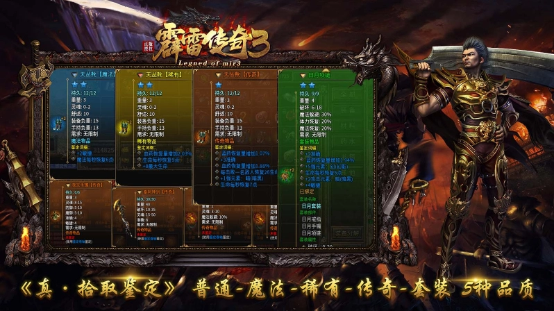 霹雷传奇3,145复古复古三职业版本,融合传奇3、沉默、传奇永恒等经典玩法,带给玩家不一样的激情体验!游戏上线即可拥有自动回收、自动挂机功能,让你直接就能下图畅快刷怪,升级打宝两不误!本服所有的装备、元宝和材料均可通过打怪获得,铭文、宝石也能通过挖矿获得,这里时间就是一切,是要有足够的时间,人人都有机会追梦,散人一样能够逆袭!