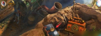 1首先,把鱼放置在左边的操作台面上,通过点击侧面开启盖子并连接好红蓝色的电线。随后转动右侧的转盘,获得已充电的鱼。在右边的操作台上,能找到研磨剂。离开房间后,借助梯子攀爬到雕像上方,在顶端的金色装置处使用研磨剂和螺丝刀,最终得到螺旋桨。