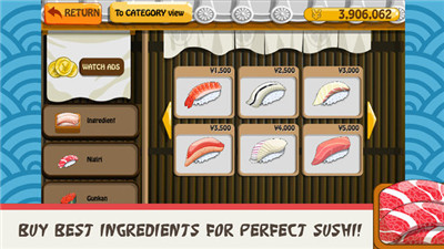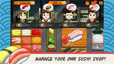 在《寿司好友3》这款游戏里,你会拥有一家属于自己的寿司店,你既是店里唯一的老板,同时也是厨师,所以整个店铺的管理工作都需要由你来负责。