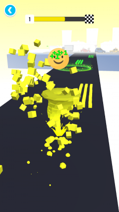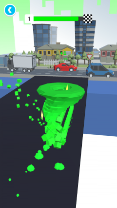 比赛里,你操控着一股龙卷风,起初它规模很小,随着移动会慢慢发展成一股巨大的龙卷风。
