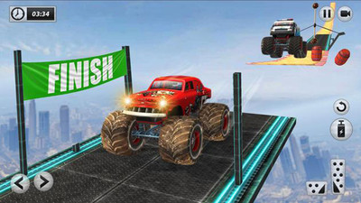3怪物卡车的巨型坡道设计让画面充满激情,驾驶过程的体验也十分刺激。