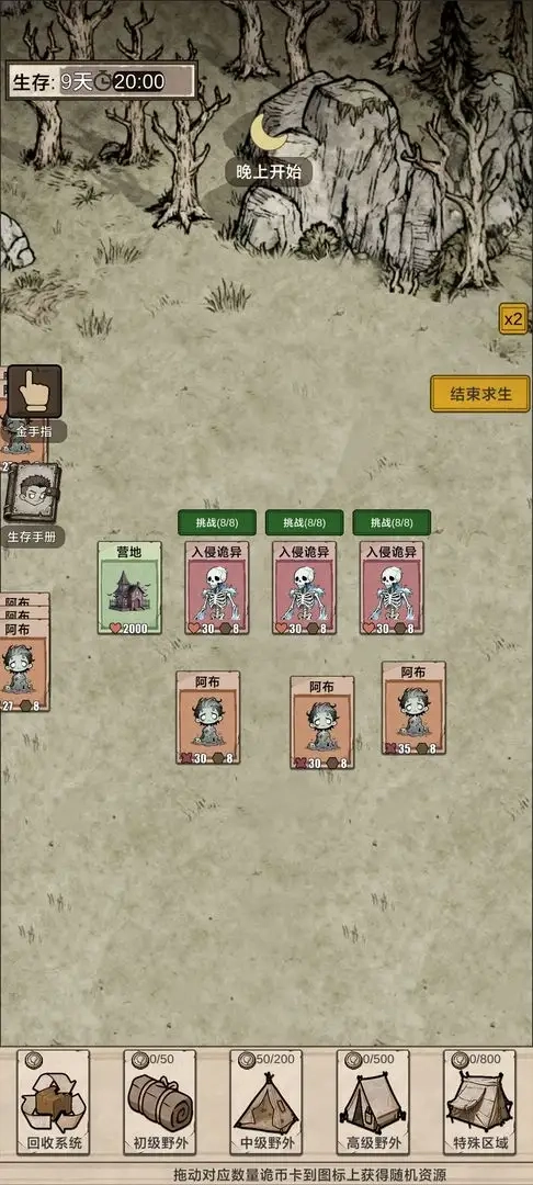 《我在异界抓诡异》是一款融合了堆叠合成、卡牌收集与塔防生存元素的策略游戏。玩家需经营初始营地,白天探索搜集资源,收容并培育各类诡异生物使其进化;夜晚则需巧妙布置防线、搭配战斗阵容,抵御一波波日益凶险的怪物进攻。在昼夜交替的循环中,逐步增强自身实力,不断拓展生存的领地。