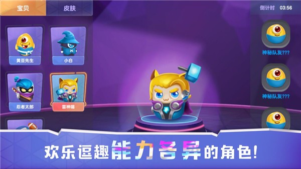 这是一款休闲竞技类游戏,目前支持3v3即时联机对战。在这个快节奏的游戏模式下,其独特的画风、人物设计以及背景音乐都十分新颖。五分钟即可开启一局,让您在轻松的对战中体验到满满的逗趣与搞怪!与真人玩家实时比拼,乐趣无穷,快来加入吧!
