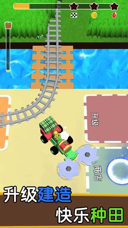 3、收割机升级系统:玩家可通过完成任务获取金币,并用这些金币来提升收割机的收割效率、移动速度以及防护能力。