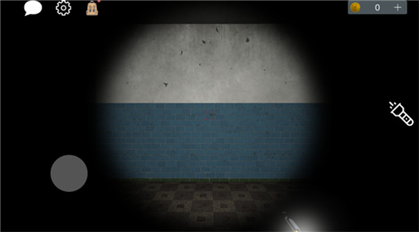 4、游戏初始阶段,玩家持有可关闭的手电筒,左上角设有聊天、设置与背包功能入口,其中背包用于存放游戏过程中收集到的线索类道具。