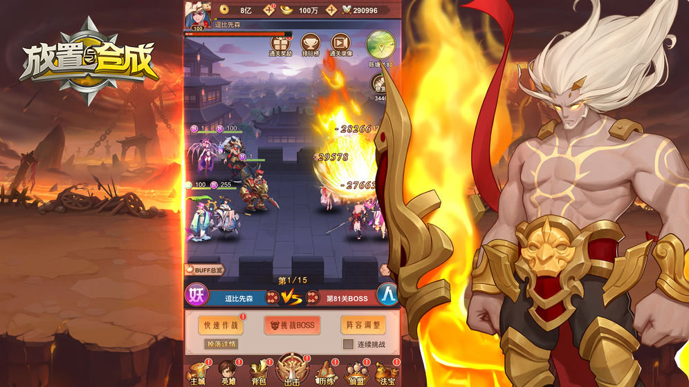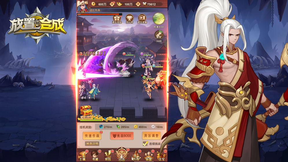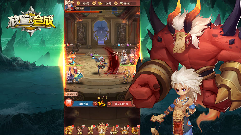 2回合制的放置合成类游戏中,角色释放的技能特效华丽夺目,能铺满整个游戏画面。