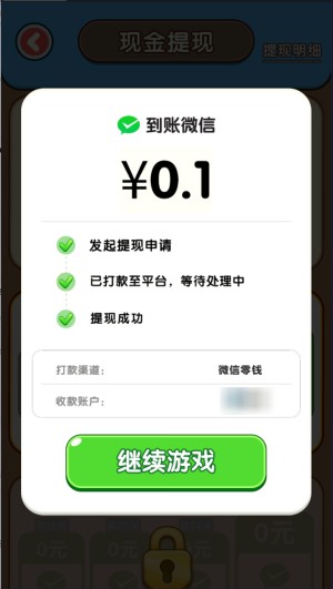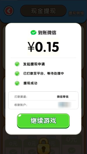 在新手教程引导下通过第一关,就能直接提现0.1元;继续玩到第三关,还能再提0.15元;后续达到特定关卡也可继续提现。此外,积累的红包可按万分之一的比例兑换提现。
