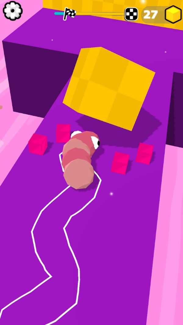 1、玩家需用手指操控一条由球构成的蛇,指引它避开障碍物,把怪物方块击碎。
