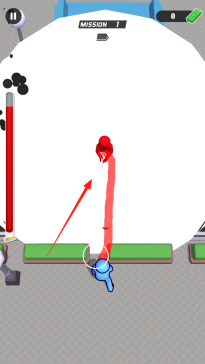 1、控制蓝色小人,长按屏幕进行瞄准,释放红色绳索来勾住目标红色敌人,通过拖拽的方式荡移靠近。