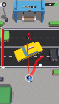 2、在通过车流第二关的黄色出租车时,要提前预判车辆的移动轨迹,借助绳索勾住路边的路沿或建筑,以此调整行进路径来避让车辆。