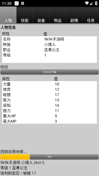 2游戏会在界面上呈现角色的各项状态,以多个进度条来标识玩家在游戏进程中的进展情况。角色在游戏过程中会积累经验值、获取各类物品,还会与怪物遭遇。获取的物品可以被出售,进而用于购置与角色当前等级匹配的新装备。此外,游戏内的部分任务属于“整体章节推进”的一环,并且在完成上一章节后,新的章节内容会随之解锁。