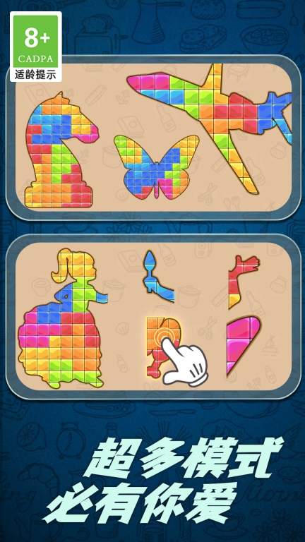 1这款木块拼接类的益智游戏提供了丰富的玩法选择,玩家能够依据个人偏好挑选不同的游玩方式。每种玩法都包含独特的关卡设计与趣味体验,让玩家在挑战中感受多样的游戏乐趣。